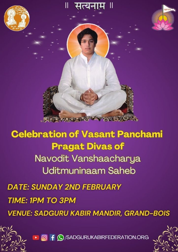 Devotees gathered in devotion and joy to celebrate the sacred Basant Panchami, marking the Pragat Divas of Navodit Vanshacharya Uditmuninaam Saheb. The programme included a spiritual Satsang, a PowerPoint presentation highlighting the divine lineage and mission, and discussions on future initiatives establishment of KDV Mauritius.